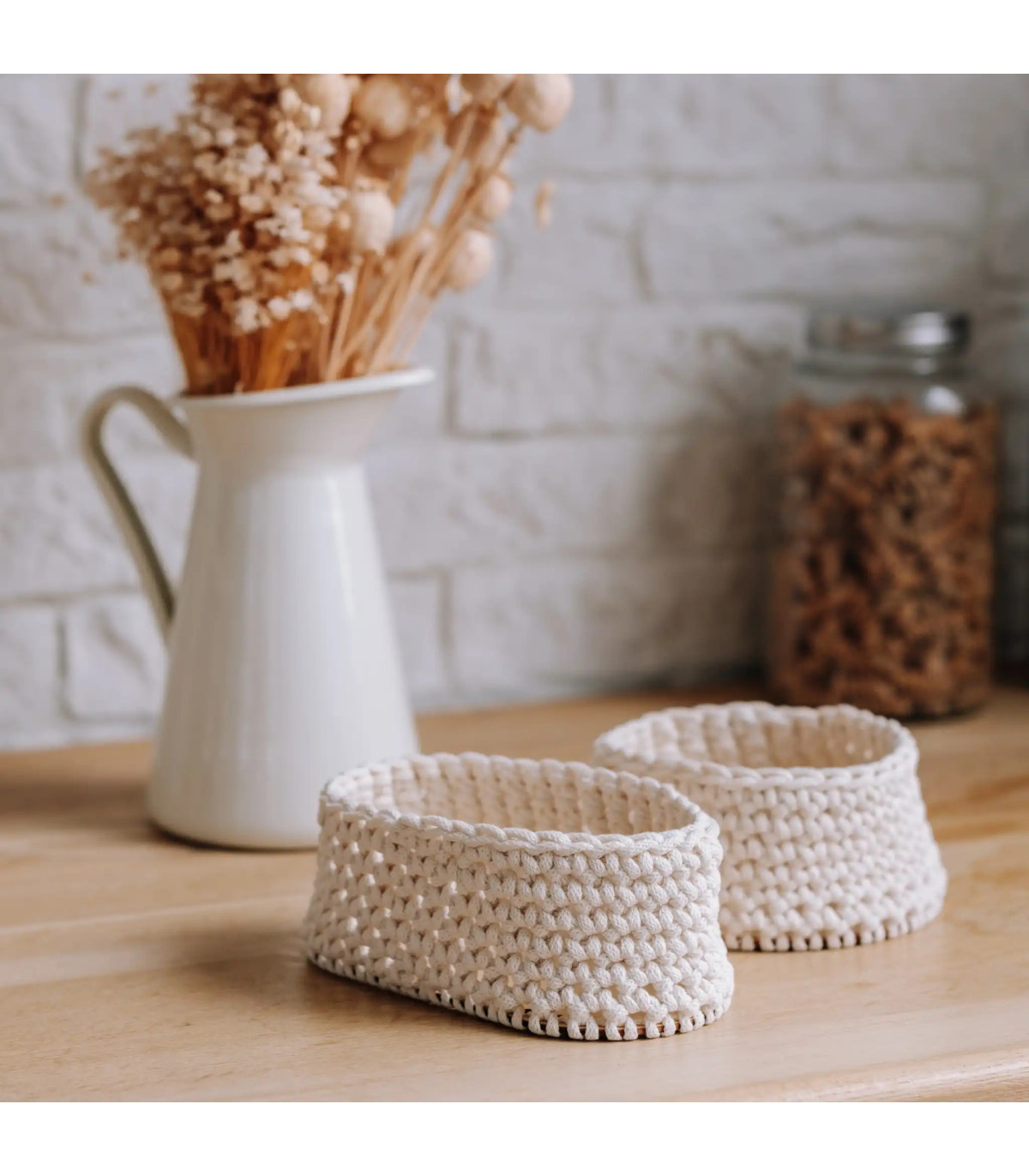 Kreativní sada na výrobu háčkovaných košíků je skvělým začátkem pro každého, kdo si chce osvojit háčkování! Hodí se pro úplné začátečníky, i pro ty, kteří háčkovat umí a chtějí udělat tvořivou chvilku, ale nechtějí zdlouhavě vybírat všechny potřeby. Háčkovaný košík z této sady se díky své neutrální barvě hodí do každého interiéru a výsledný výrobek tak bude nejen hezky vypadat, ale také bude praktickým funkčním doplňkem.