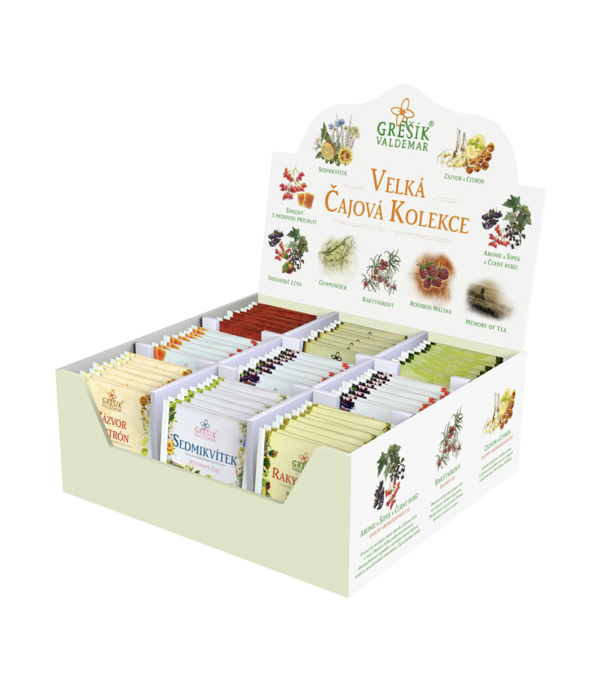 Kolekce obsahuje 9 druhů čajů: Zázvor & Citrón & Med, Sedmikvítek, Rakytníkový, Aronie & Šípek & Černý rybíz, Indiánské léto, Rooibos Malina, Šípkový čaj s medem, Memory of Tea a Gunpowder
