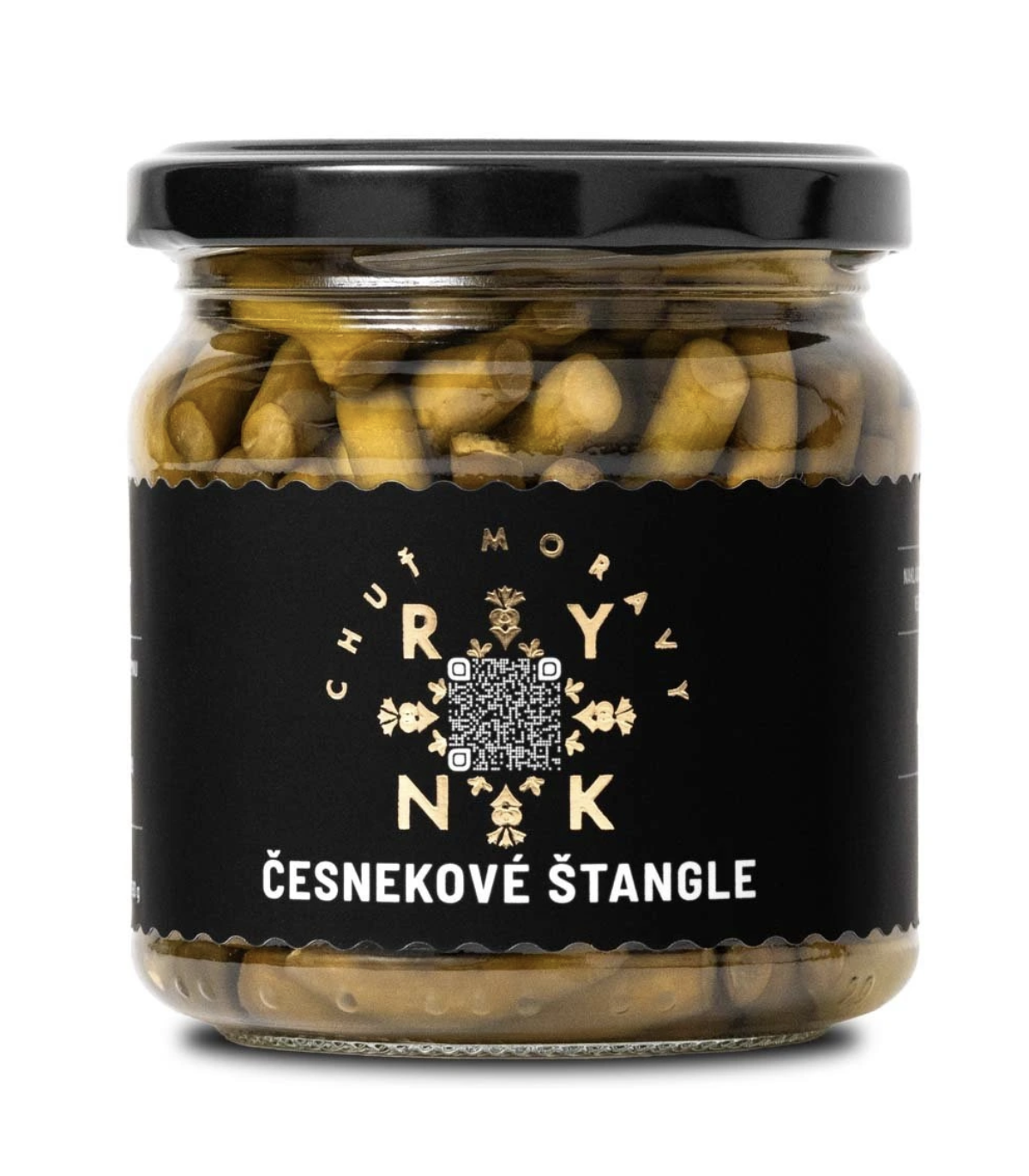 Česnekové štangle je delikatesa vyrobená z neprávem opomíjené části rostliny česneku paličáku, která často na jaře končí bez užitku na zemi. Mladé výhonky (štangle) česneku naložené ve sladkokyselém, jemně pikantním nálevu jsou skvělým doplňkem, který dodá vašim kulinářským výtvorům jedinečnou chuť a originalitu.