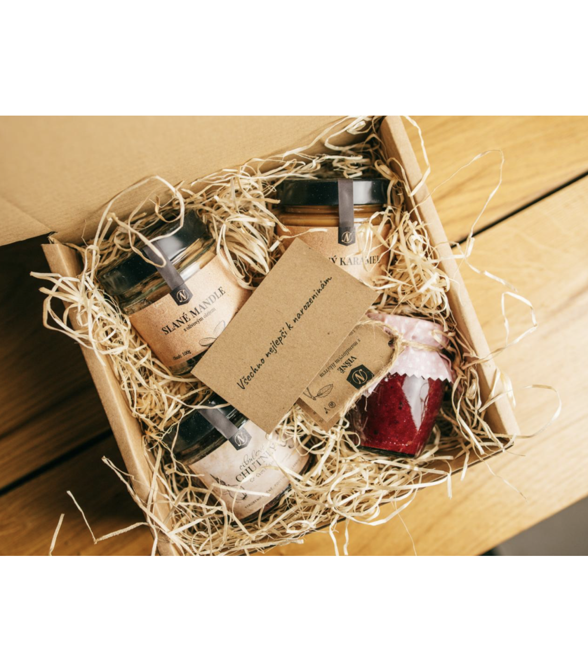 Hledáte dárek, který udělá opravdovou radost? Tato dárková sada delikates potěší každého, kdo si rád pochutná. Stylové balení skrývá čtyři lahůdky, které rozzáří narozeninový den a vykouzlí úsměv při každém ochutnání. Perfektní dárek pro babičku, dědečka nebo kohokoliv, komu chcete udělat radost poctivou chutí a krásným balením. A hlavně – je to dárek, na který se nebude prášit.
