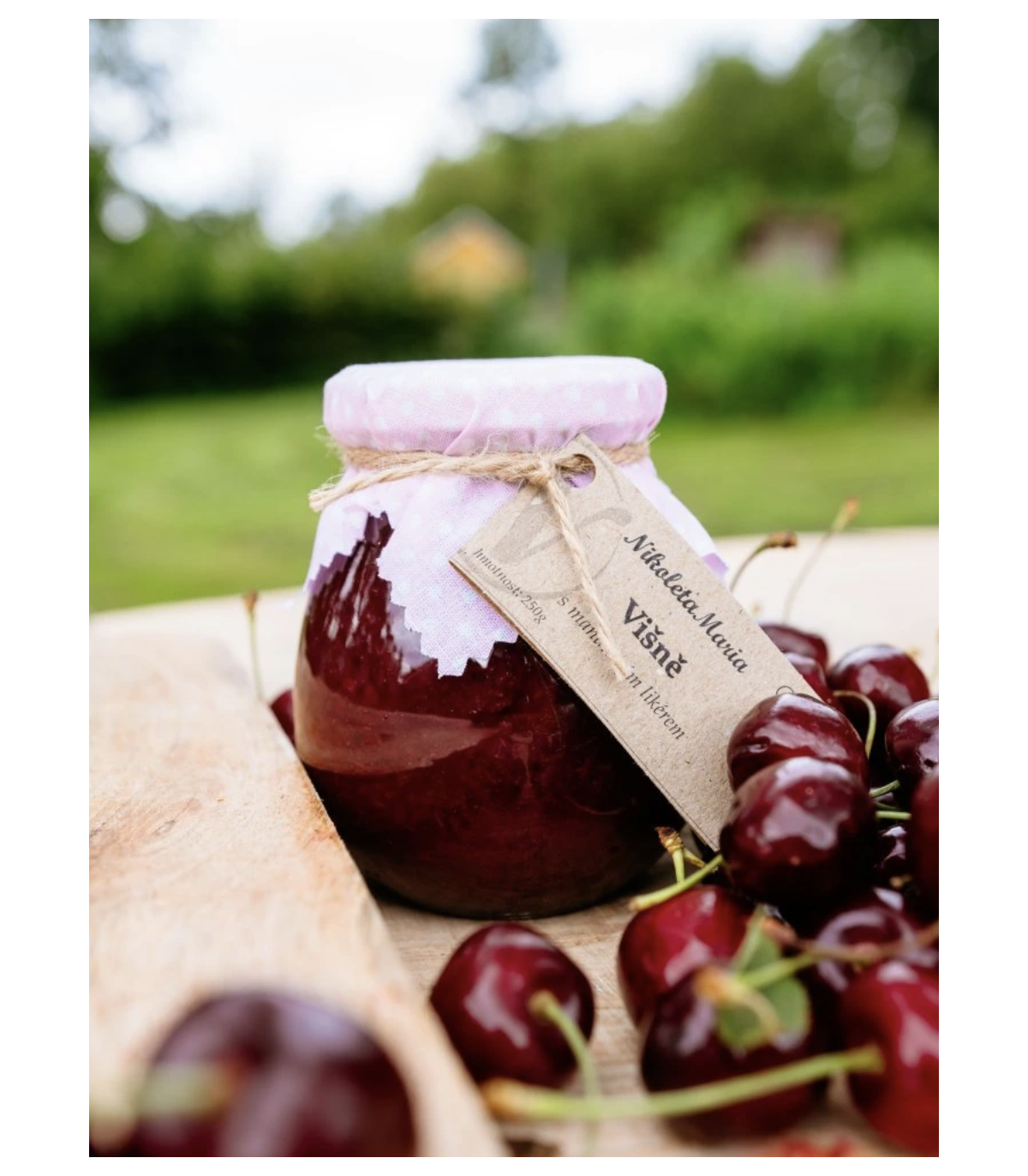 Složení: višně (84 %), cukr, citrónová šťáva, mandlový likér (1 %), pektin.