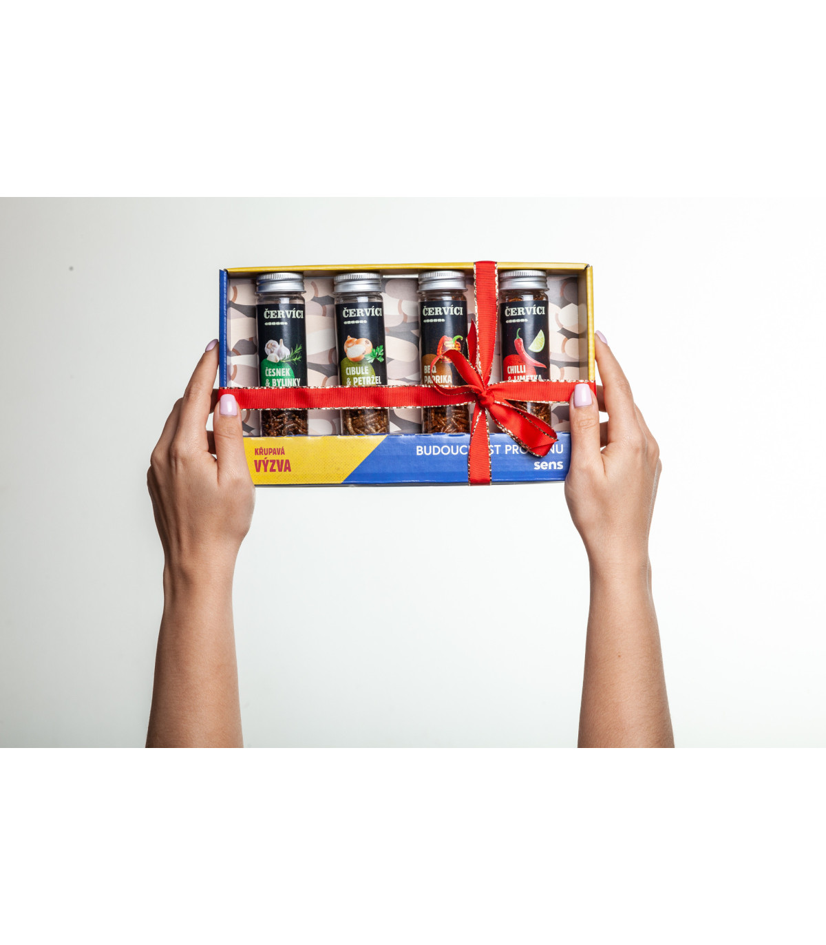 Pak pro vás máme skvělý tip! Křupaví červíci v dárkové krabičce jsou ideálním dárkem pro všechny, kterým si nevíte rady s dárkem a všechno už mají. Křupaví červíci s vynikajícími kořeněnými příchutěmi jako česnek s bylinkami nebo chilli s limetkou přináší chuťový zážitek, o kterém se bude mluvit ještě dlouho. Navíc jsou skvělým zdrojem bílkovin a šetrnější k přírodě. Darujte mu zážitek, na který nezapomene!