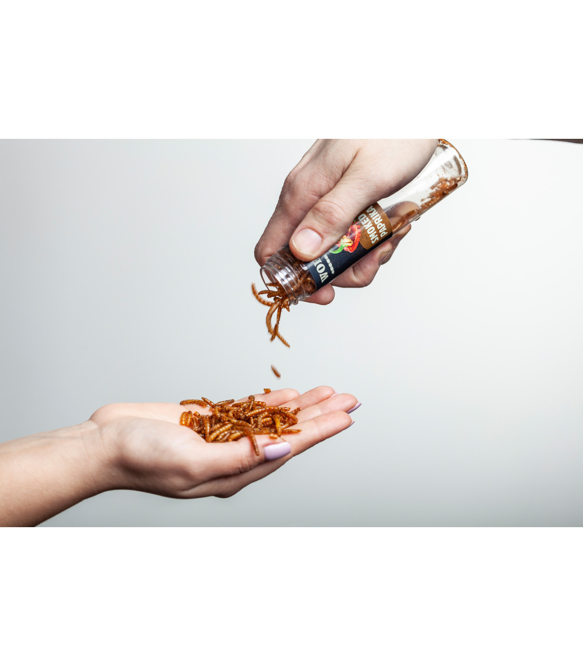 Červíci mají jemně oříškovou a máslovou chuť. Skvěle se hodí třeba místo chipsů k televizi, jako originální pohoštění na party nebo třeba doplněk rizota či salátu.