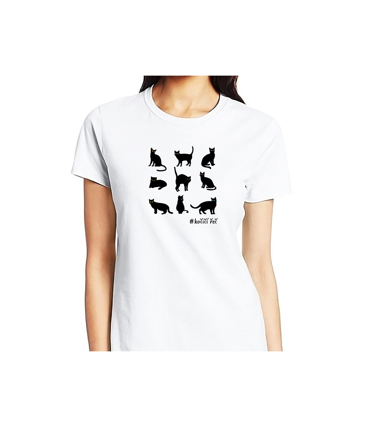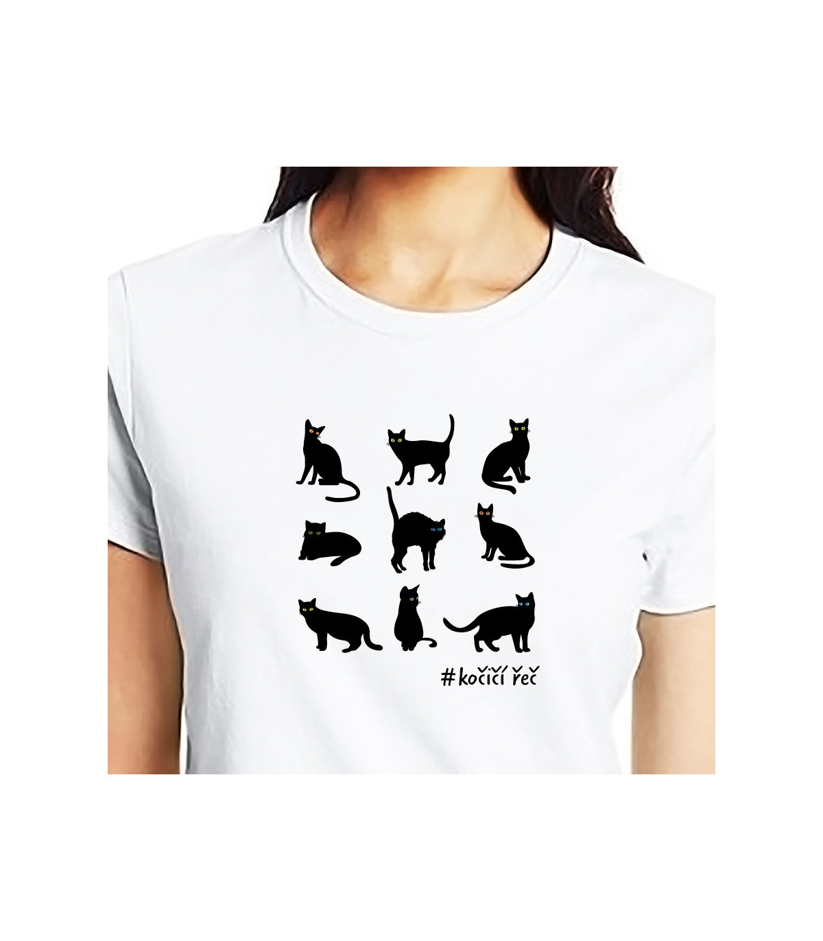 Tričko Kočičí řeč potěší milovnice koček. Kočky mají svůj jazyk – dokonale výmluvný. Řeknou všechno pohledem, pohybem ocasu nebo nenápadným gestem. A přesně tuto „kočičí řeč“ zachycuje originální tričko, které potěší každou ženu se slabostí pro kočky.