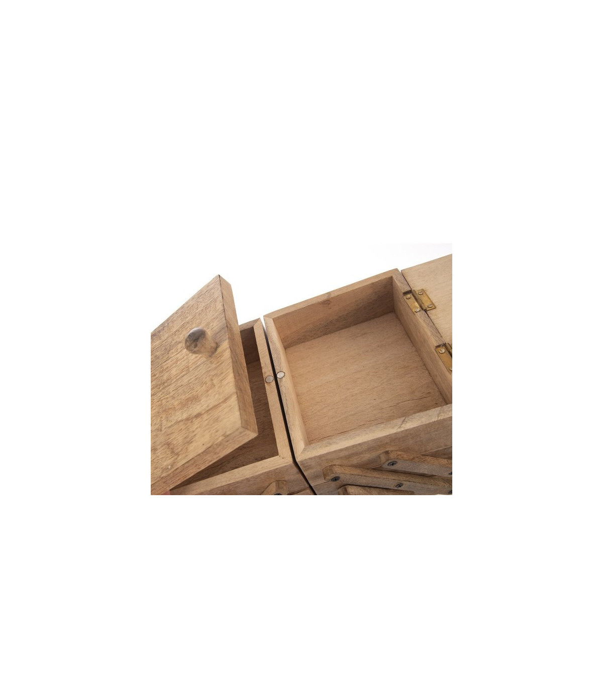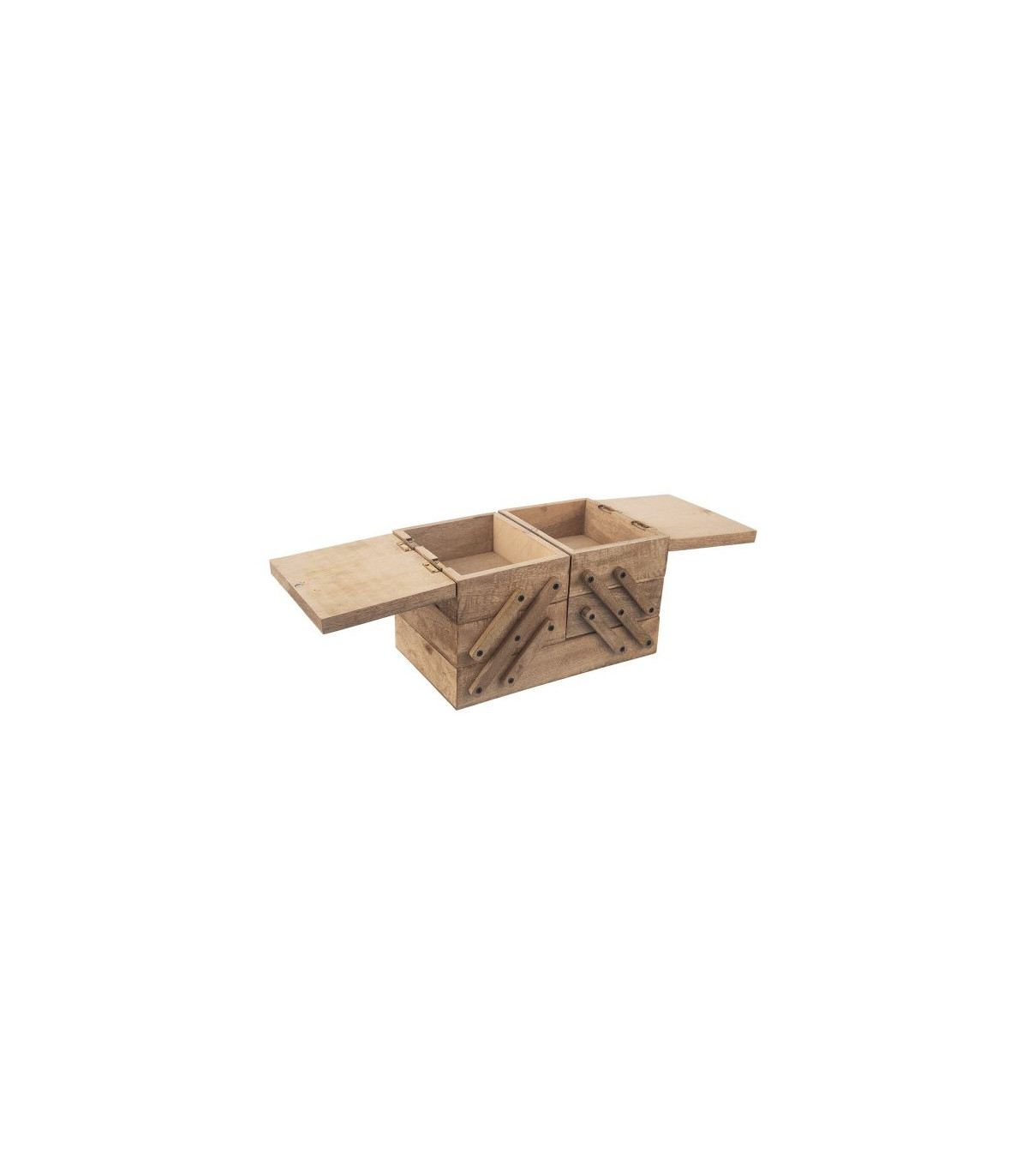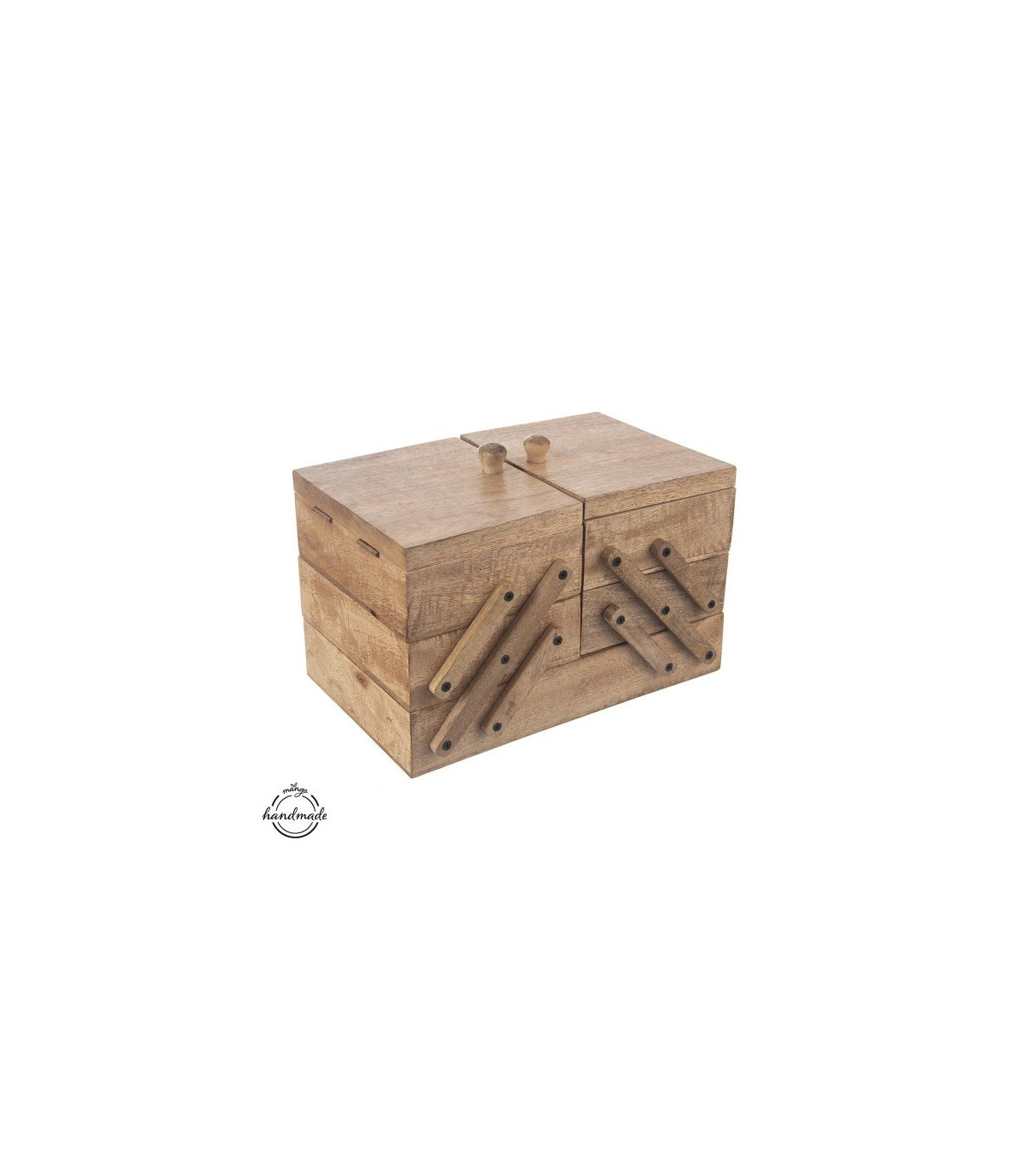 Nádherný ručně vyrobený rozkládací box z mangového dřeva, který ale můžete použit nejen na uložení potřeb na šití, ale také třeba na háčkování, vyšívání nebo jako prostor pro uložení jiných drobností. Kazeta je rozdělena do 5 úložných sekcí a má dvě odklápěcí víčka. Díky této kazetě tak budete mít vše potřebné uspořádané na jednom místě.