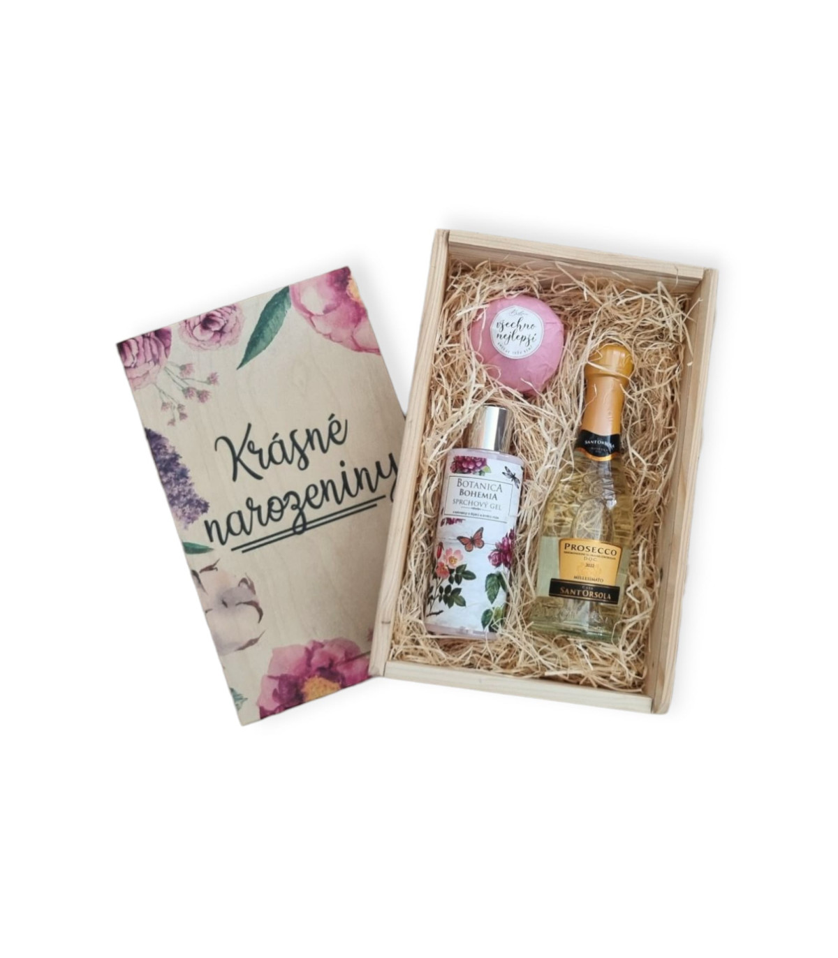 Maminka nebo babička slaví narozeniny? Pak pro vás máme skvělý tip na dárek, který ji rozhodně potěší. Tato dárková sada v dřevěné bedýnce v sobě ukrývá prosecco na přípitek, sprchový gel s vůní šípků a růží a na konec šumivá pěnivá bomba do koupele pro jedinečné chvíle relaxace. Krásný dárek pro naše milované ženy.