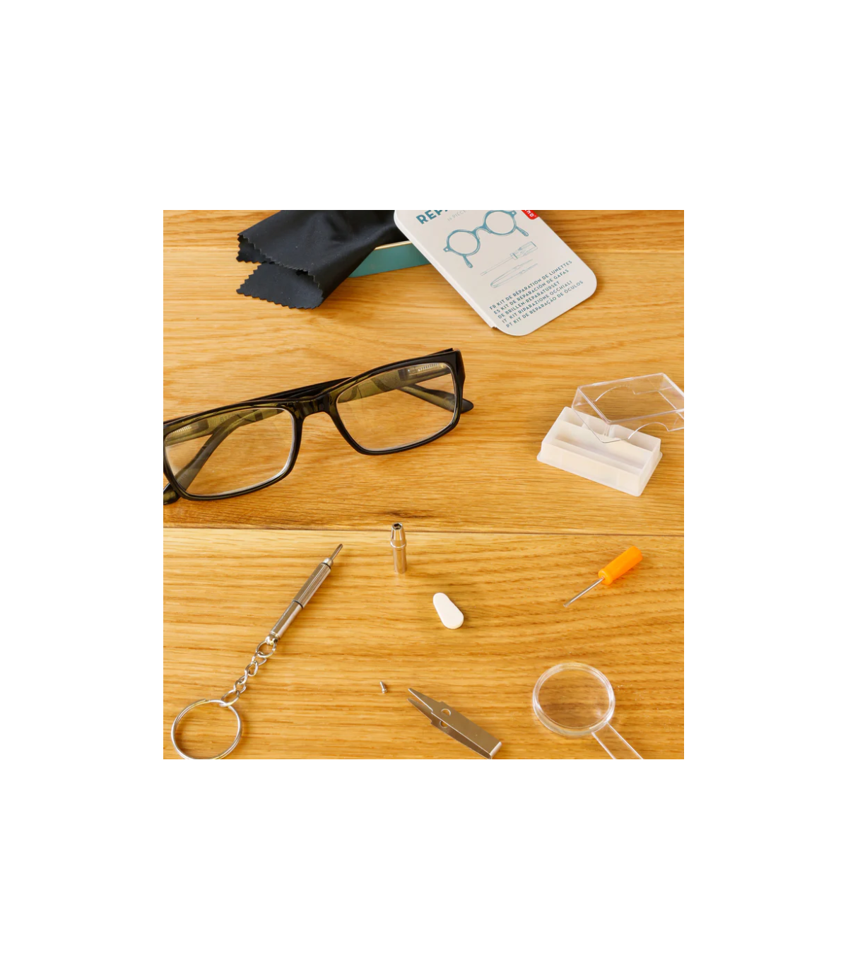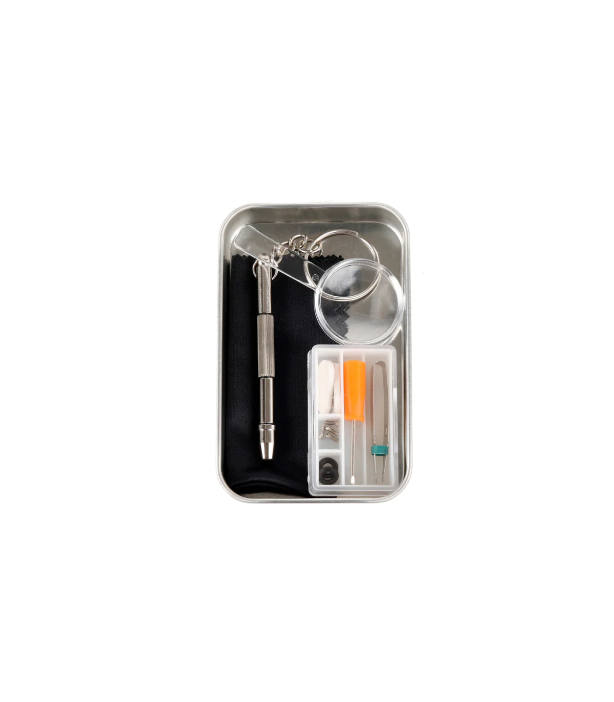 Sada obsahuje veškeré příslušenství potřebné k snadnému, rychlému, a důslednému vyčištění nebo opravě brýlí: