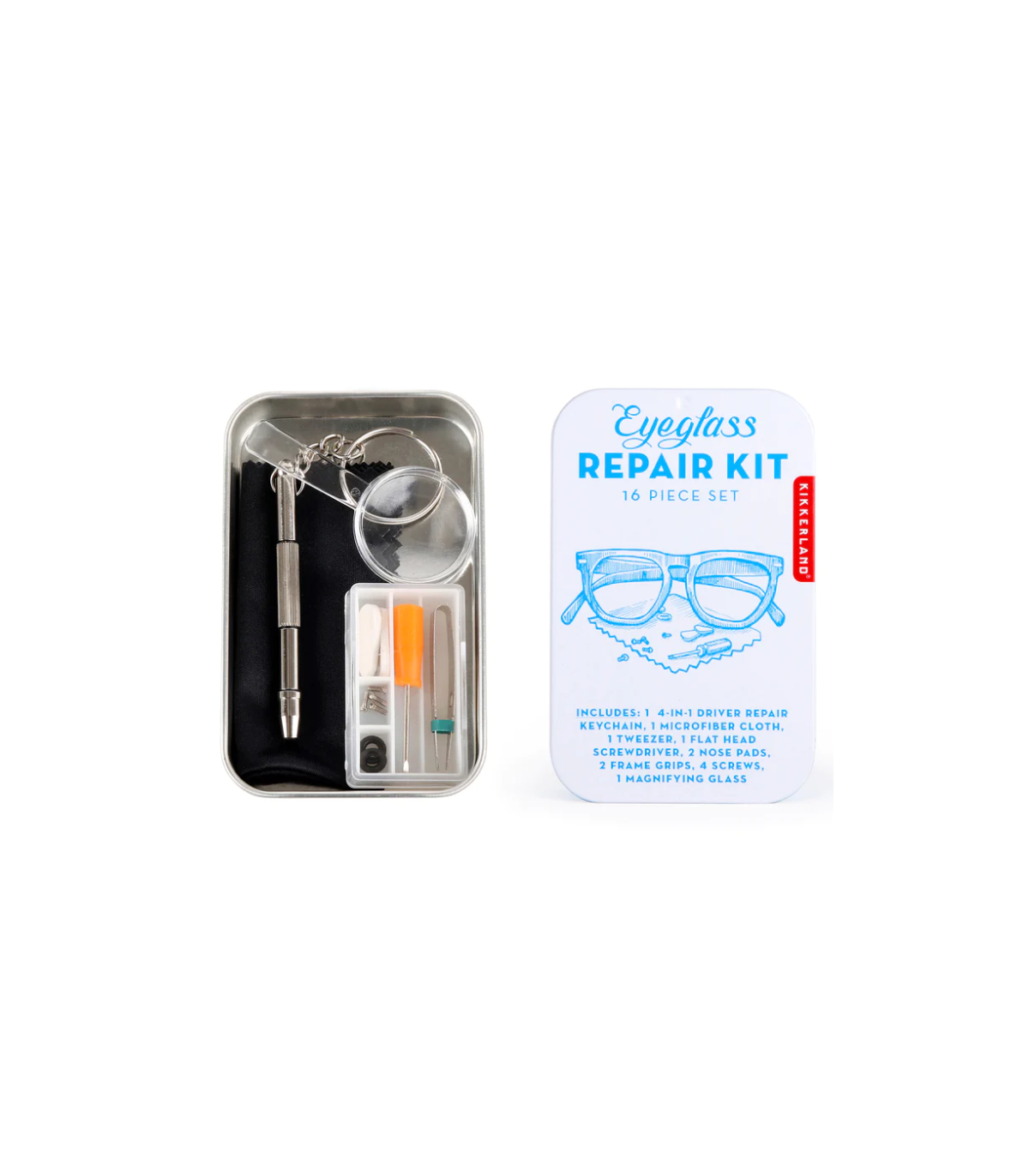 "Kápézetka" pro babičky a dědečky, kteří nosí brýle. Praktická sada na opravu brýlí a jejich snadné vyčištění. Je skvělým pomocníkem do domácnosti i na cesty. S její pomocí bude vaše babička nebo dědeček už vždy hezky vidět, a lehce si utáhne i povolený šroubek. Originální dárek pro všechny, kteří nosí brýle. Dodáváme ji v plechové dárkové krabičce.