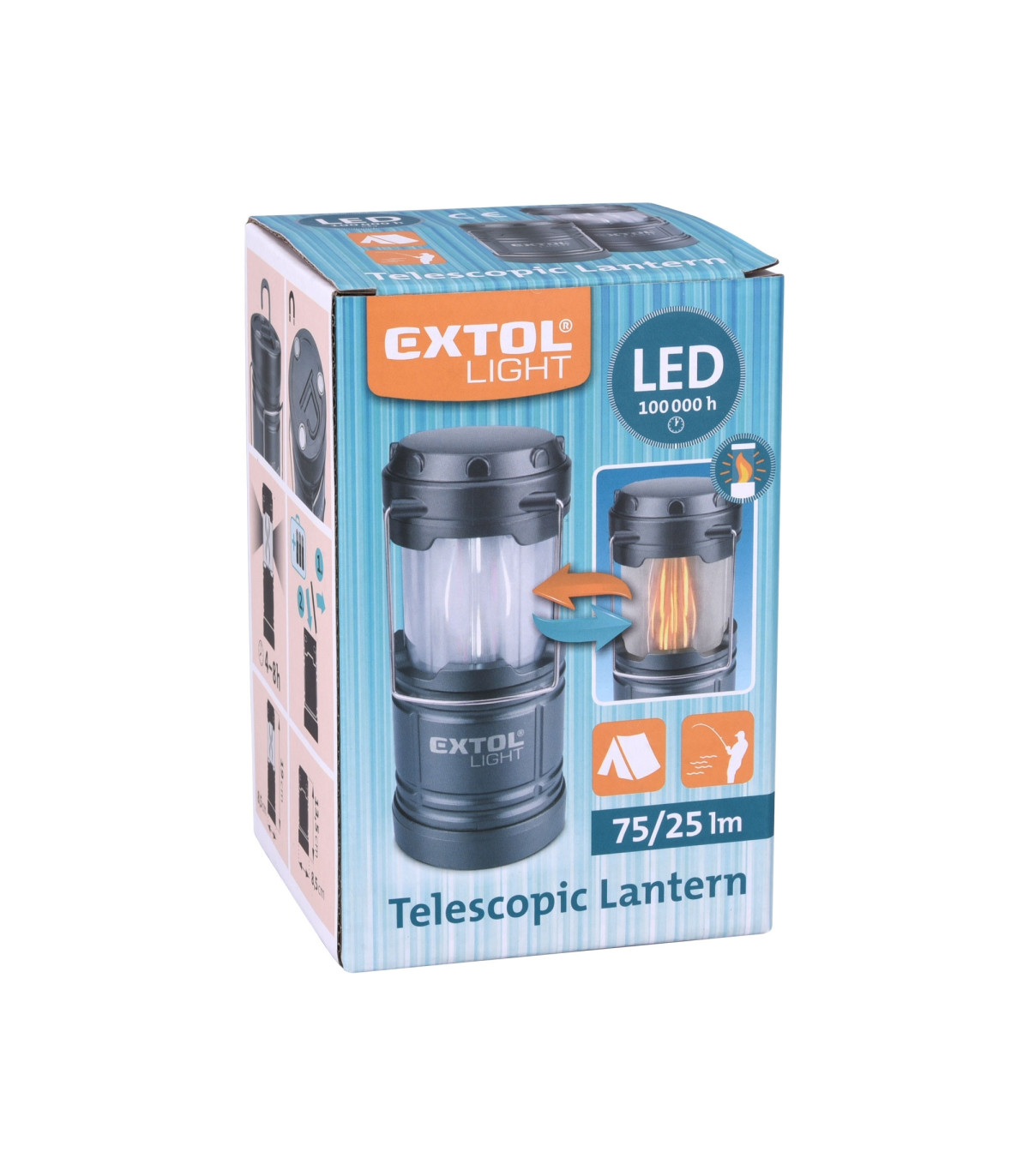 Teleskopická svítilna vytváří světlo s rozptylem 360° a osvítí tak všechen prostor, který je třeba. Má praktické držátko, takže lze kdykoliv kamkol přemístit.
