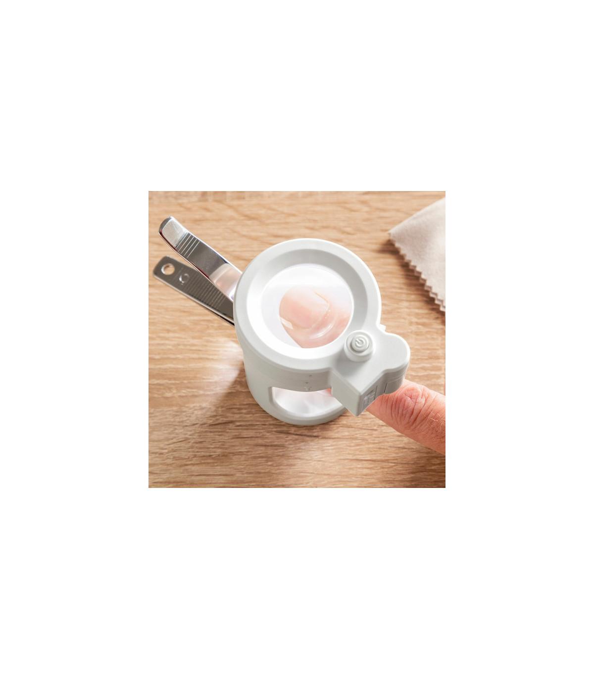 Objevte moderní způsob péče o nehty s multifunkčními kleštičkami s integrovaným LED světlem, lupou a pilníkem. Ideální dárek pro vaše blízké s horším zrakem. Tato pomůcka je navržena tak, aby usnadnila péči o nehty. Odnímatelná lupa a jasné LED osvětlení poskytují vynikající viditelnost i ve špatně osvětlených prostředích. Ergonomický design s protiskluzovými prvky a přizpůsobitelným držákem na prsty zajistí pohodlí a bezpečnost při používání. Tento praktický dárek pomůže vašim blízkým udržet si nezávislost při osobní péči, aniž by museli žádat o pomoc.