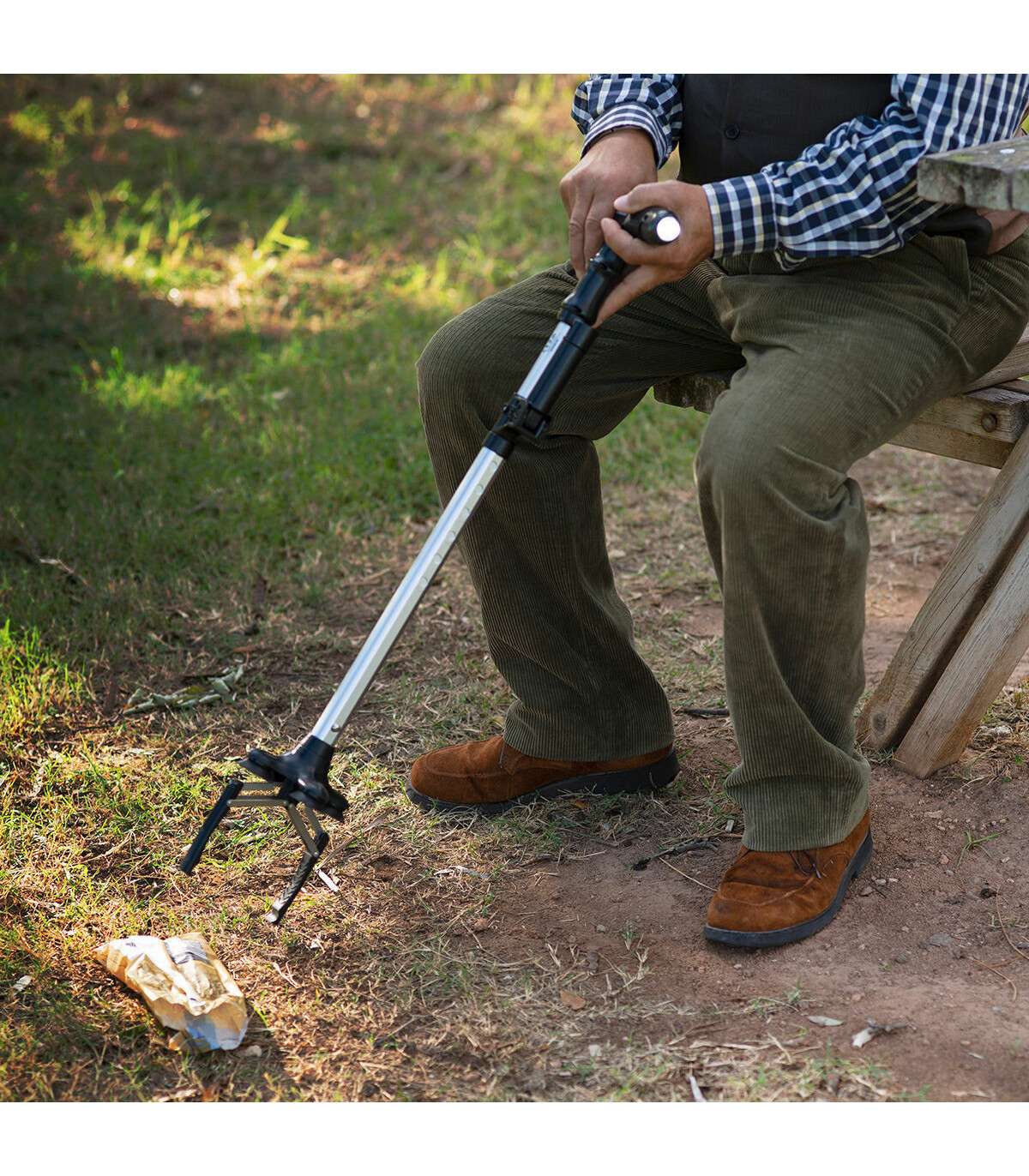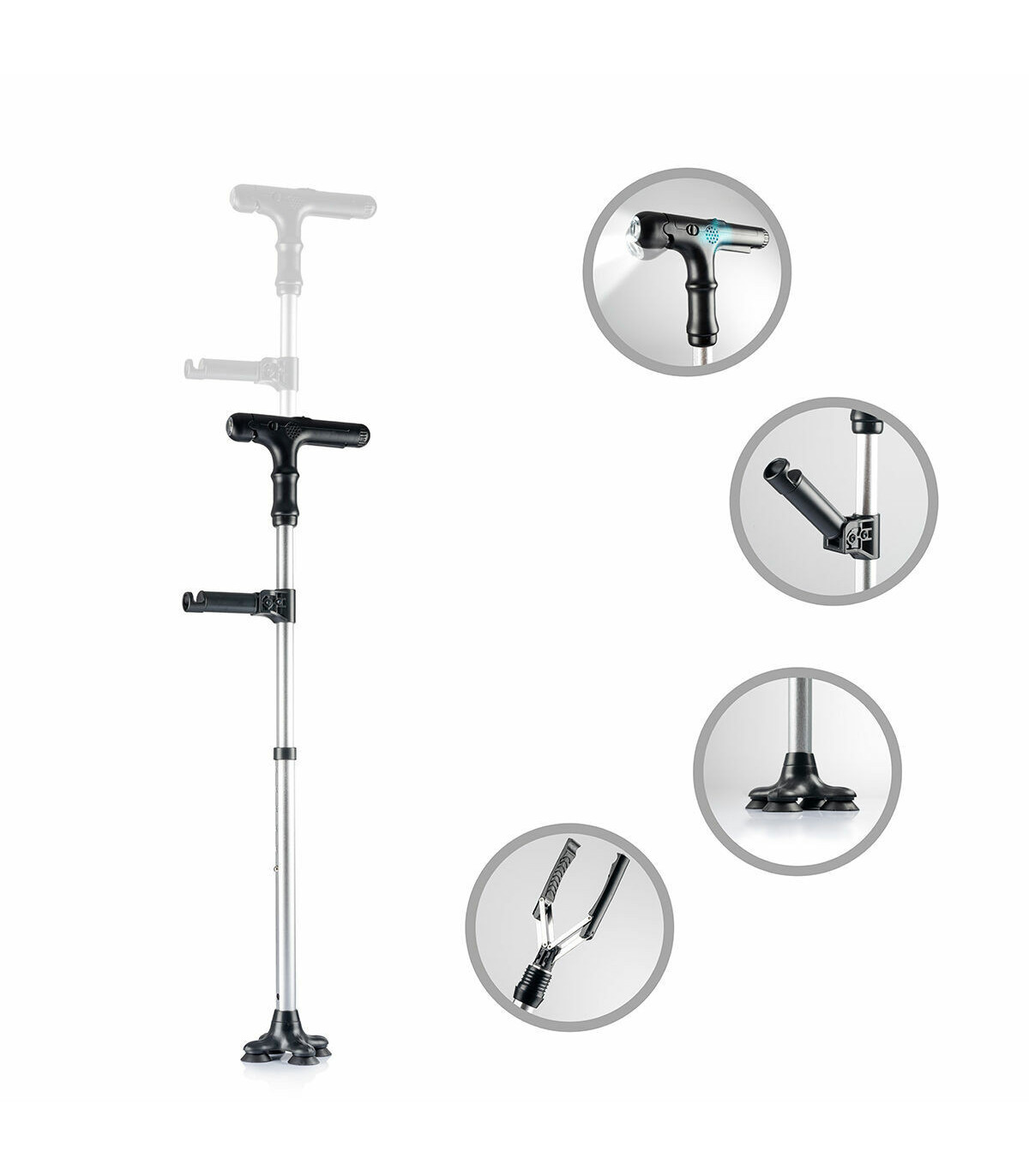 Teleskopická hůl s LED, alarmem a podavačem předmětů