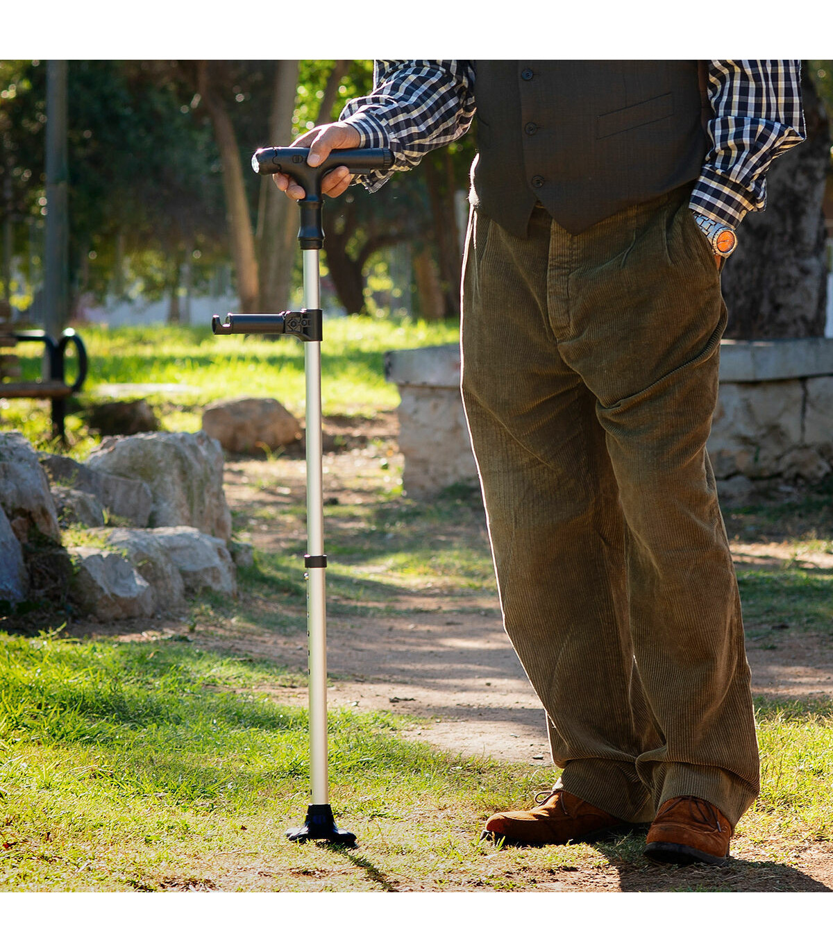 Teleskopická hůl s LED světlem pomůže večer na cestě, alarm zajistí pocit bezpečí a podavač předmětů usnadní život doma i venku.