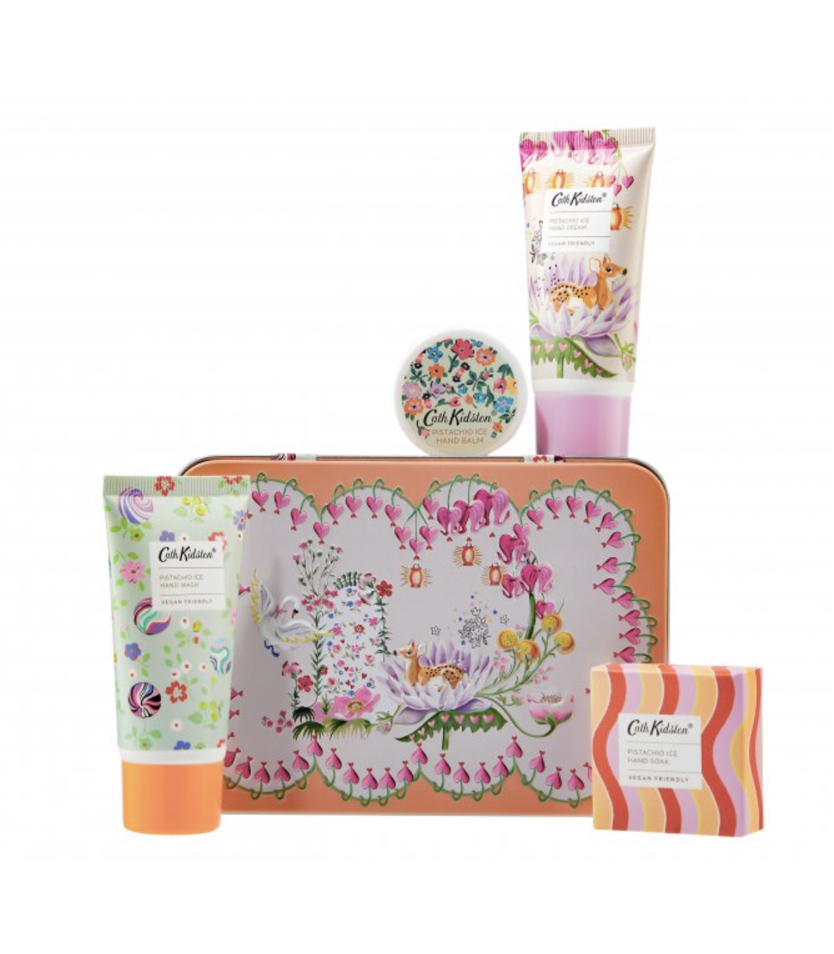 Sada péče o ruce v plechovce s vůní pistácie uchvátí vás nejen svou okouzlující oříškovou vůní, ale i elegantním designem dárkové plechové krabičky. Rozmazlete svoji maminku nebo babičku touto exkluzivní sadou obsahující čtyři voňavé produkty a dopřejte jim jim tu nejlepší péči o jejich ruce i smysly.