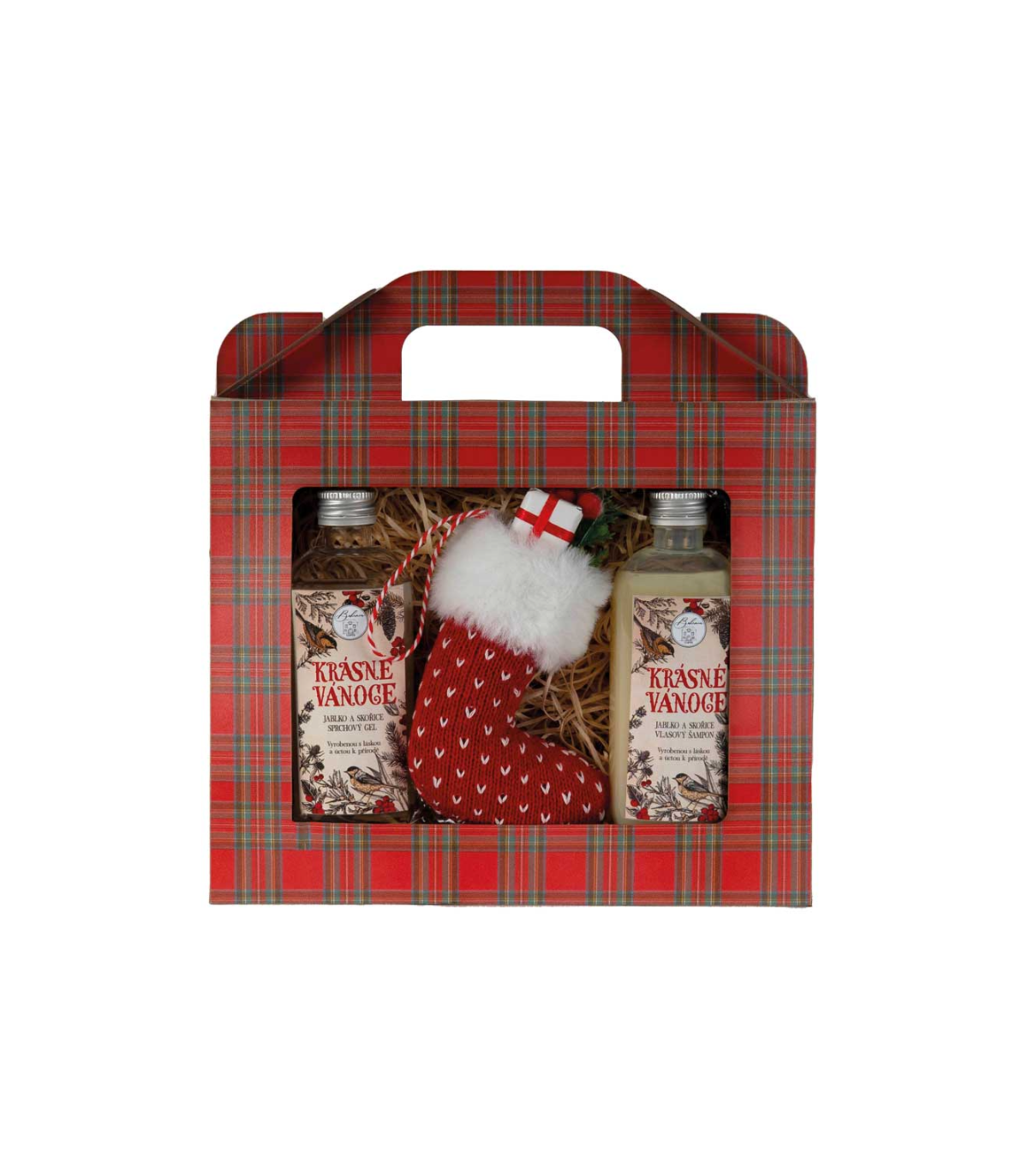 Vánoční dárkové balení s punčochou je perfektním dárkem pro babičku, která si zaslouží trochu péče a radosti. Balení obsahuje sprchový gel (100 ml), vlasový šampon (100 ml) a vánoční ozdobu ve tvaru punčochy, která krásně doplní sváteční výzdobu. Produkty jsou baleny v dekorativní krabičce s vánočním motivem, takže dárek působí hřejivě a slavnostně. Sprchový gel a šampon jsou ideální pro každodenní péči, zanechávají příjemnou vůni a pocit svěžesti. Tento dárkový set potěší každou babičku a přinese jí úsměv během Vánoc.
