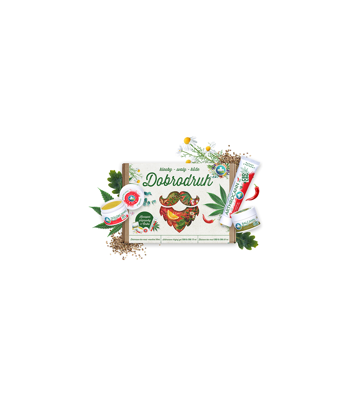 Dárková sada přírodní kosmetiky z konopí DOBRODRUH - péče o svaly, klouby a kůži
